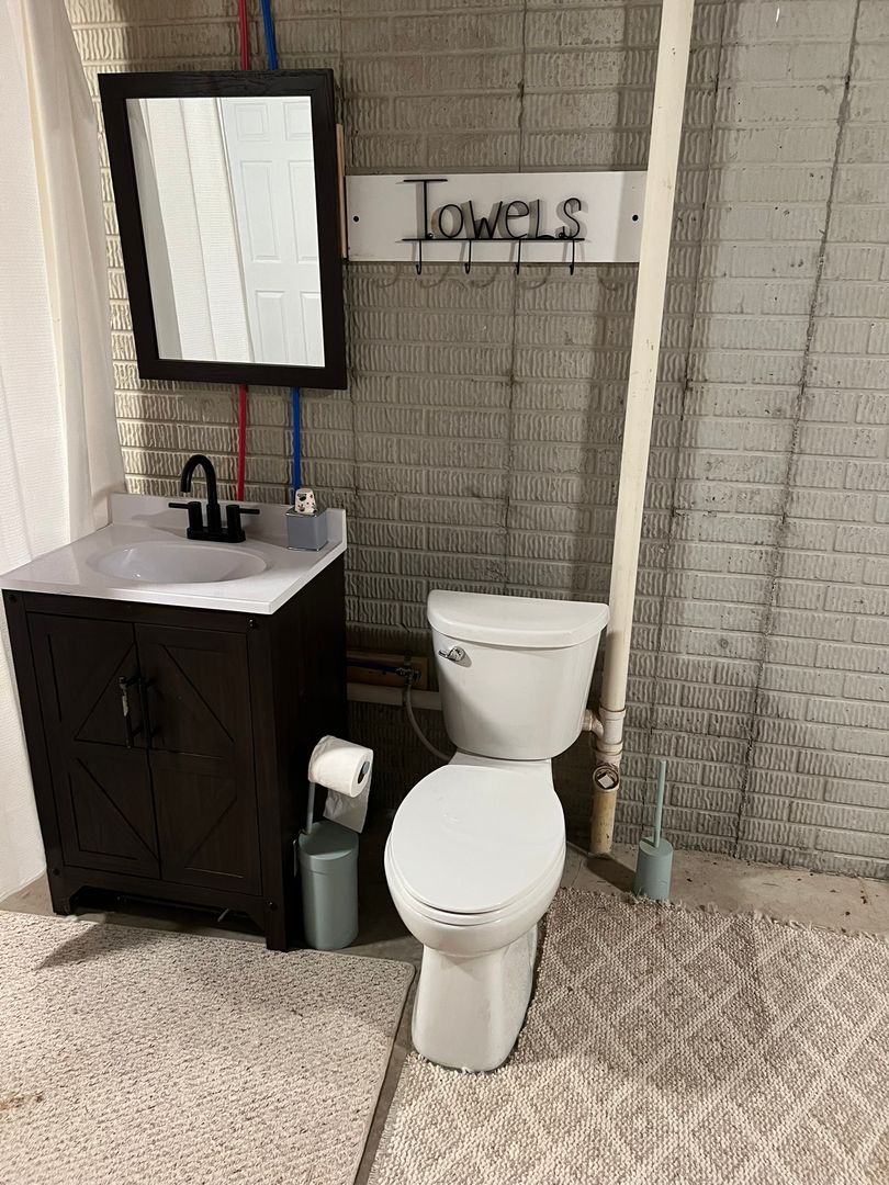 Basement has bathroom with very large bedroom